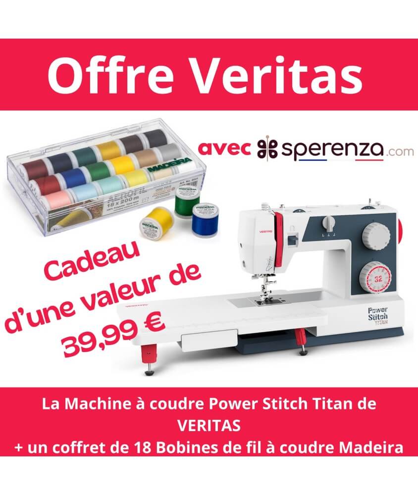 Boostez vos projets couture avec la VERITAS Power Stitch 32 Titan ! Cette machine à coudre puissante de 90W offre 1 000 points/minute et une structure métallique ultra-résistante, parfaite pour le cuir, le denim ou la toile épaisse. Profitez de 32 programmes, d’un enfileur intégré, d’une table XXL et de nombreux accessoires. Idéale pour couturières exigeantes, elle garantit polyvalence, précision et résultats professionnels.