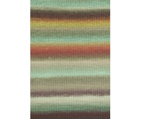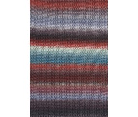 Les séquences de couleurs ont été composées avec un art consommé par les designers Lang Yarns. Chaque coloris propose un voyage chromatique unique : des pastels tendres aux teintes plus vives, les nuances se fondent les unes dans les autres avec une fluidité remarquable. Tricoté en jersey ou en point mousse, le résultat est un ouvrage qui semble peint à l'aquarelle, unique et incomparable.
