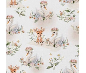 Tissu coton enfant impression numérique cygne et biche : apportez une touche féérique à vos créations avec ce tissu 100 % coton, doux, souple et certifié Oeko-Tex. Idéal pour vêtements, accessoires et décoration, il séduit par ses motifs cygne et biche précis et poétiques. Largeur généreuse de 150 cm, entretien facile, qualité supérieure : ce tissu est parfait pour des projets couture uniques, sains et adaptés à la peau des enfants.Laissez parler votre créativité !