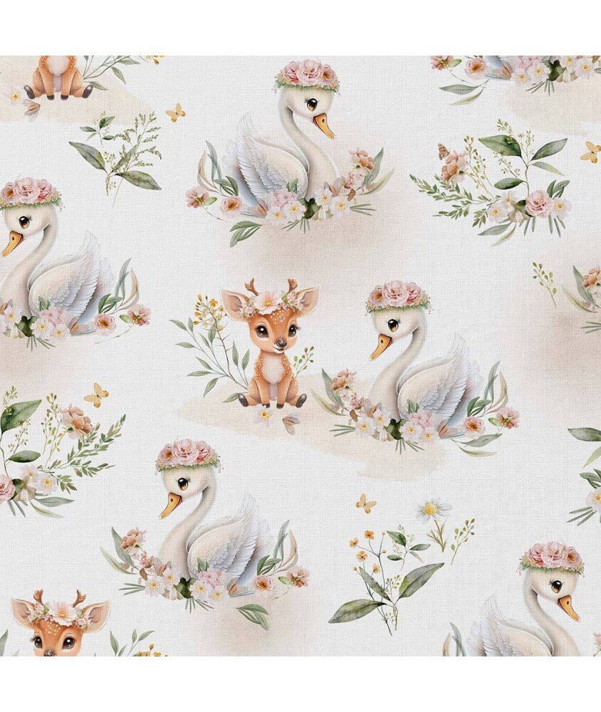 Tissu coton enfant impression numérique cygne et biche : découvrez le tissu idéal pour réaliser des créations textiles uniques et pleines de tendresse, spécialement conçu pour les enfants et les amateurs de couture créative. Ce magnifique tissu en 100 % coton offre une douceur incomparable et une grande souplesse, parfait pour confectionner des vêtements, accessoires, linges de lit ou éléments décoratifs pour chambre d’enfant. Grâce à son impression numérique d’une grande précision, ce tissu met en scène de ravissants cygnes et biches dans un univers féérique, apportant une touche poétique et élégante à toutes vos réalisations.