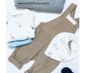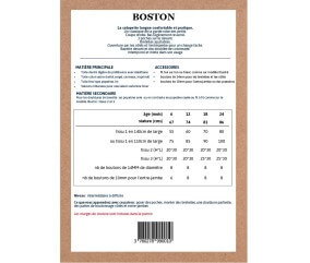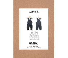 Boston est un patron de salopette mixte, pour bébé. Il dispose d’une coupe droite, de trois poches sur le devant et de bretelles ajustables. L’ouverture s’effectue soit par le côté, soit par l’entrejambe pour un enfilage simplifié.