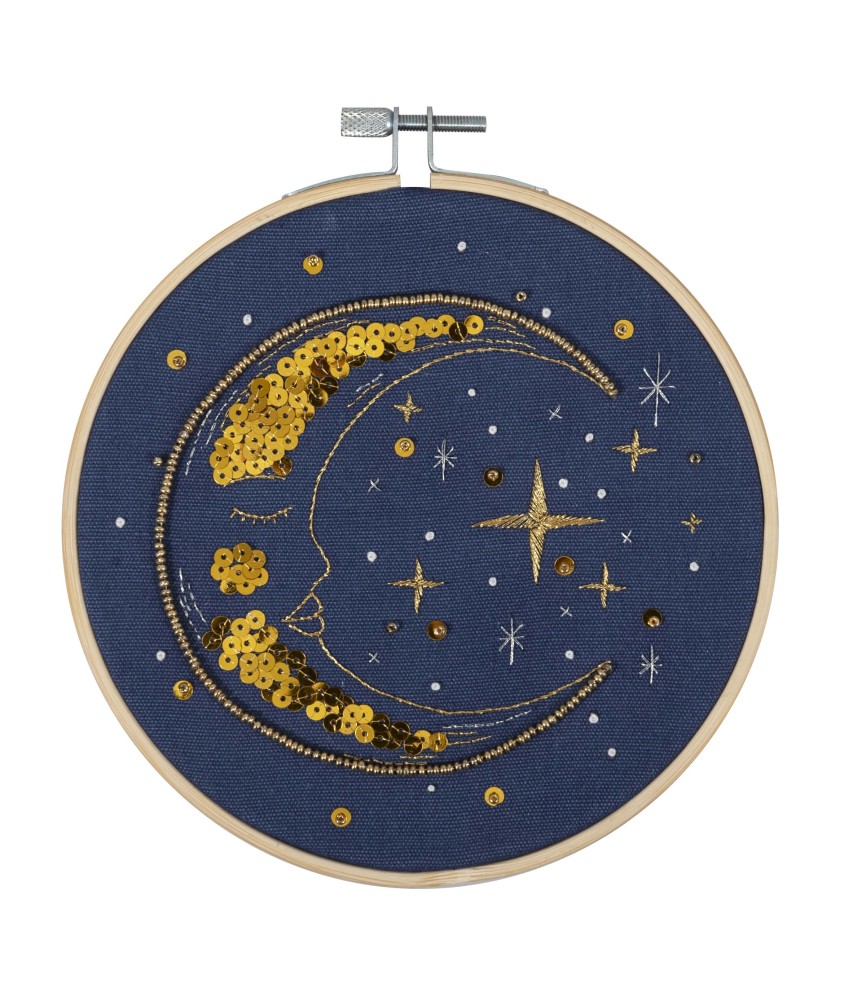 Le Kit de Broderie Lune Trimits contient tout le nécessaire pour vous lancer sans attendre : un cercle à broder de 15 cm en bois naturel, une toile de qualité, des fils à broder multicolores soigneusement sélectionnés, une aiguille et des instructions détaillées étape par étape. Grâce à sa couleur multicolore, le motif de la lune prend vie dans une harmonie subtile de nuances, pour une création originale et pleine de douceur.