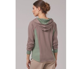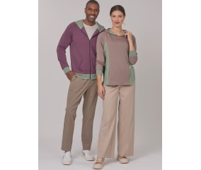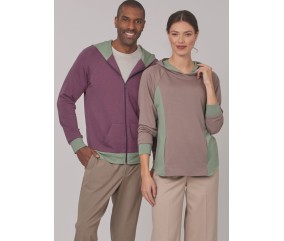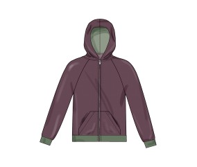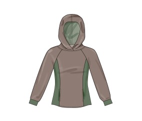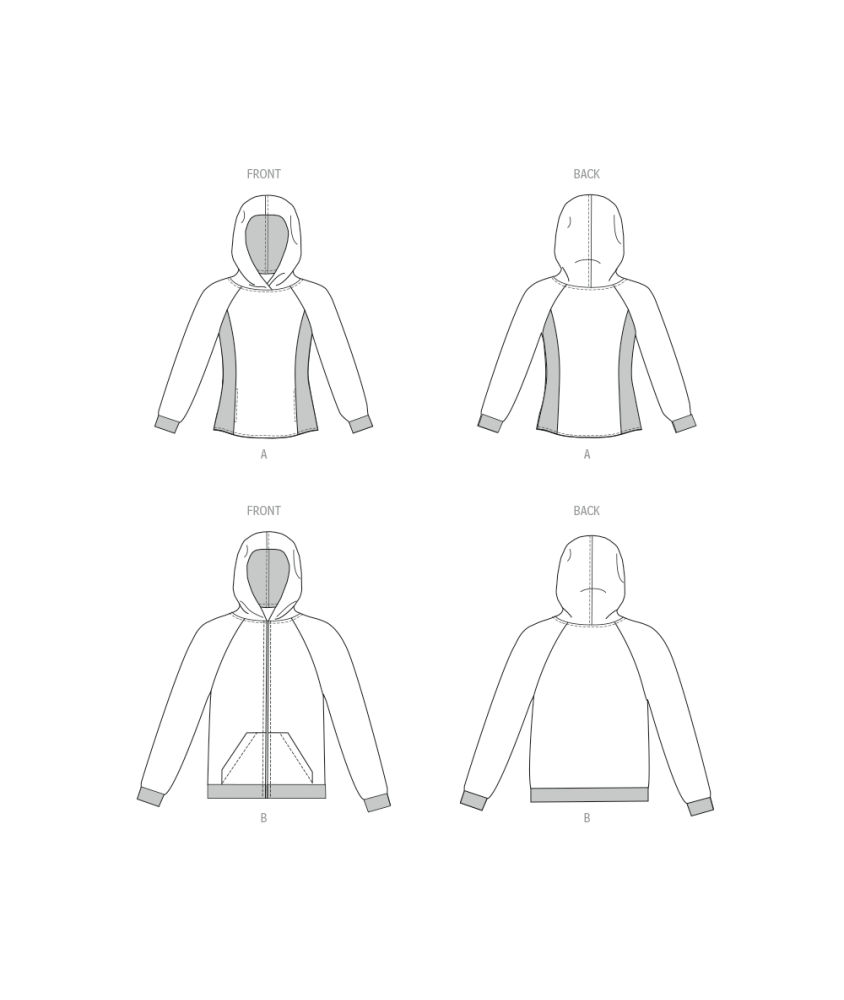 Modèle A sweat à capuche ajusté avec des manches raglan, des panneaux en contraste sur le côté, des poignets, une bande d’ourlet et une capuche doublée en contraste. Modèle B sweat à capuche zippé sur le devant avec des poches kangourou et des poignets en contraste, une bande d’ourlet et une capuche doublée contrastante.