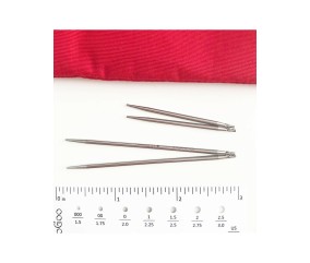 Cet ensemble d’aiguilles interchangeables couvre les tailles de numéro d’aiguille : US 0-3 (2-3.25mm), ce qui en fait un choix idéal pour tricoter des chaussettes, des manches, des bonnets ou tout autre ouvrage nécessitant de petites tailles d’aiguilles. Grâce à sa taille compacte de 5 et 8 cm, ce kit est spécialement pensé pour les ouvrages en rond de petit diamètre, permettant d’obtenir une précision et une finesse inégalées dans chaque maille.