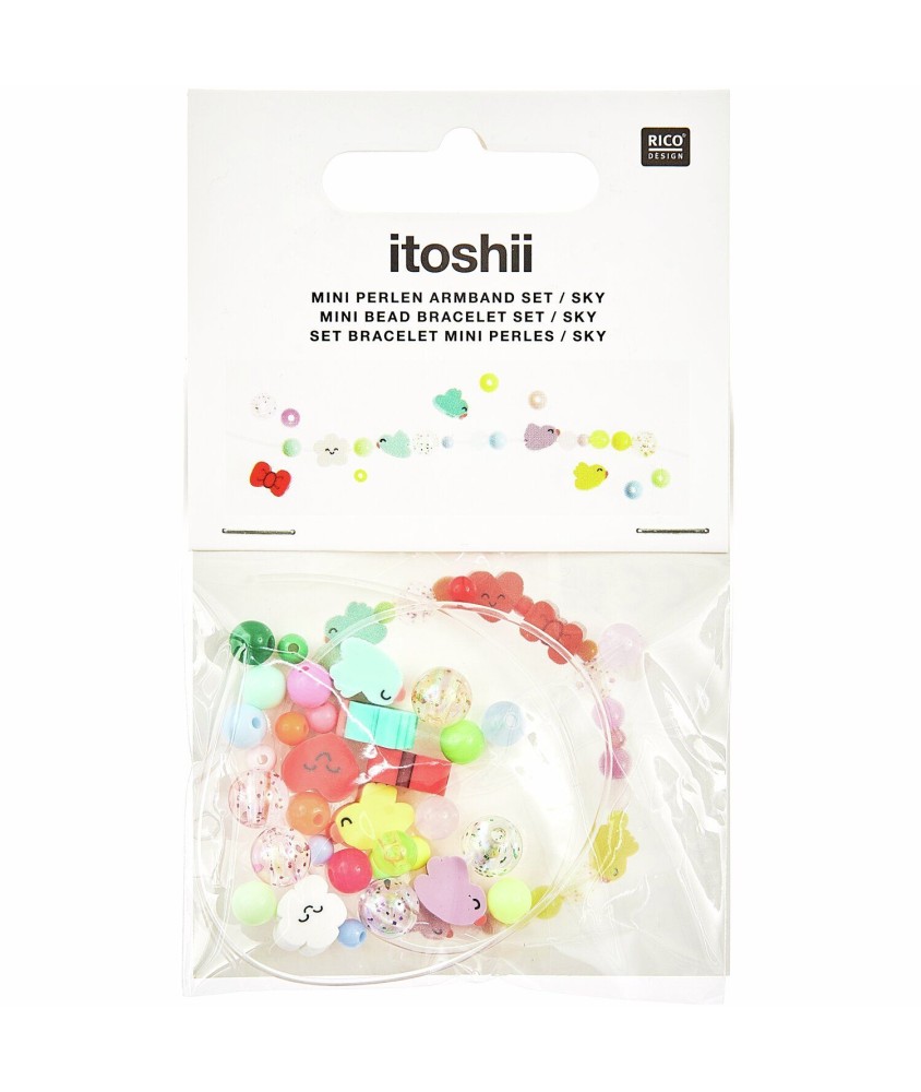 Initiez les enfants au plaisir du DIY créatif avec le Set de bracelet mini perles Itoshii Chingu – Chingu Sky de Rico Design.