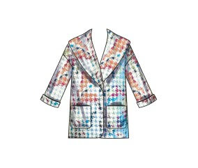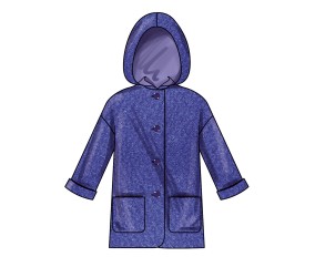 Manteaux décontractés, doublés, au-dessus du genou avec des emmanchures basses, des Manteaux décontractés, doublés, au-dessus du genou avec des emmanchures basses, des manches longues avec des poignets à retourner et des poches plaquées. Les manteaux peuvent être fait avec une capuche ou du col châle démesuré. Modèle A à devant boutonné.