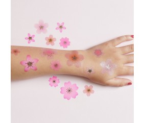 Ce lot comprend 2 plaques de tatouages réunissant 17 motifs fins et filigranes, inspirés de la beauté éphémère des fleurs de cerisier.