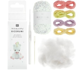 Le Ricorumi Mini Easy Crochet Set – Unicorn regroupe tout le matériel nécessaire pour mener votre projet à bien, du premier point aux dernières finitions décoratives.