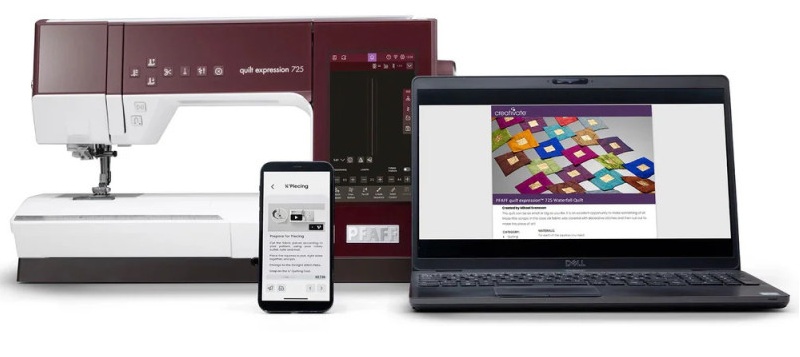 Machine à coudre et quilting PFAFF Quilt Expression™ 725 – Écran tactile, IDT™, laser de guidage – Haut de gamme