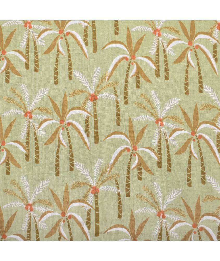 Tissu coton double gaze palmiers