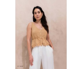 On y retrouve des pièces casual à l’esprit libre et bohème : tops, débardeurs et mailles estivales faciles à porter.