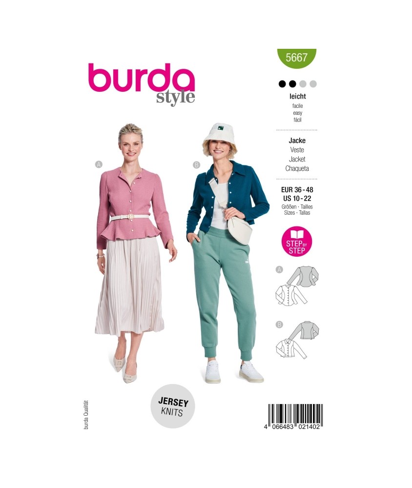 Le patron Burda Style 5667 vous permet de réaliser une robe moulante en jersey moderne et féminine. Conçue pour mettre en valeur la silhouette, cette robe utilise l'élasticité naturelle du jersey pour épouser les courbes avec fluidité et élégance. Son design minimaliste et contemporain en fait une pièce intemporelle, facilement habillée ou décontractée selon les accessoires choisis.