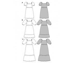 Ce patron de robe femme inclut toutes les pièces nécessaires pour réaliser l’ensemble du vêtement : avant, dos, éventuellement parementures ou encolure simplifiée selon la variante, et repères de montage précis. Les marges, pinces ou lignes d’ajustement sont clairement indiquées, ce qui vous aide à adapter le modèle à votre stature ou à vos préférences de confort. La robe peut être personnalisée avec une ceinture, un ruban, des surpiqûres contrastées ou des ourlets décoratifs pour un rendu encore plus unique.