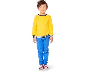 Patron Burda Kids n°9254 — Sweatshirt confortable pour enfant (garçon/fille) avec encolure ronde et bandes contrastées. 2 variantes de manches. Tailles 104 à 146 cm (4-11 ans). Niveau facile.