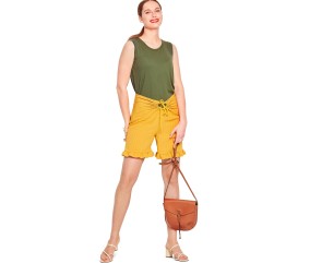 Trois styles de pantalons et shorts à partir d'un seul patron ! La ceinture élastique avec lien coulissant est le détail phare de ce modèle super facile à coudre. Tailles 34 à 44.