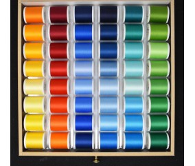 Le Coffret Trésor bois Madeira 8140H est la référence absolue pour les brodeuses, quilteuses et couturières créatives qui souhaitent disposer d'un assortiment complet de fils haut de gamme dans un écrin de bois artisanal. Ce magnifique coffret à 3 tiroirs en bois naturel fabriqué à la main contient 150 bobines de fils premium Madeira soigneusement sélectionnées pour couvrir toutes vos créations.
