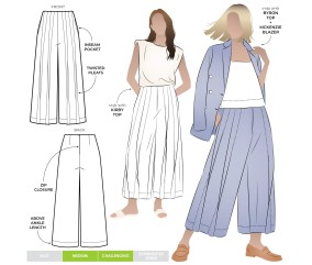 Lin, coton, viscose, jersey ou tout autre tissu souple adapté à la confection d'un pantalon. La matière choisie influencera le style et le tombé final.