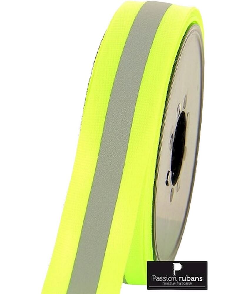 Ruban Gros Grain Réfléchissant Jaune 25 mm - Vendu par 50 cm