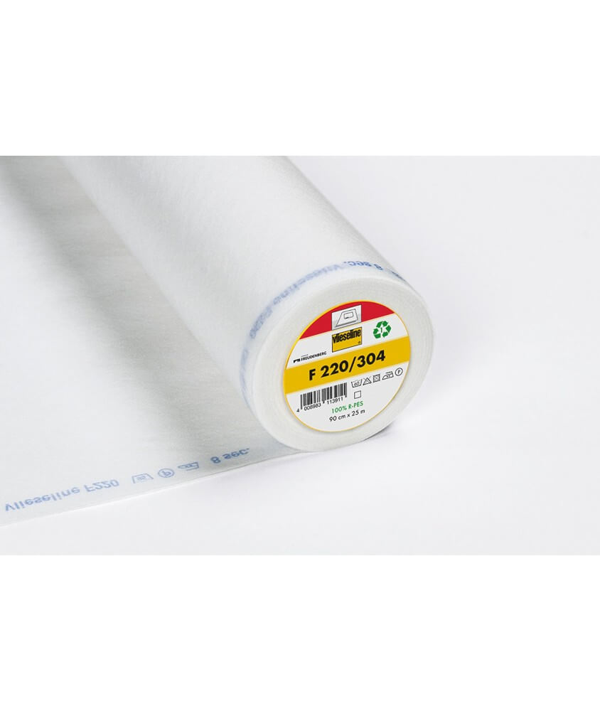 Entoilage thermocollant non-tissé Vlieseline F220 – 43 g/m², certifié Oeko-Tex Standard 100. laize 90 cm, coloris blanc. Légèreté et souplesse caractérisent ce non-tissé thermocollant idéal pour les tissus fins et délicats : blouses, chemisiers, robes légères et créations textile. Sa formule Oeko-Tex garantit l'absence de substances nocives, parfaite pour les tenues bébé et enfant. Lavable à 60°C et facile à poser au fer.