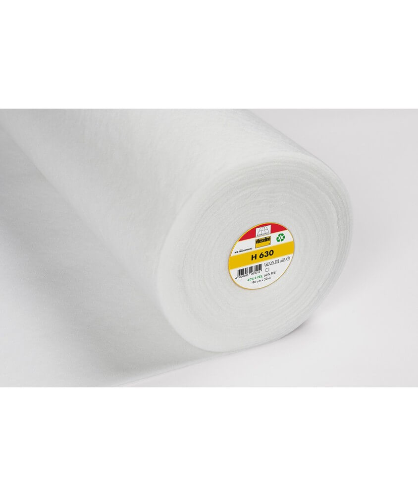 Le molleton thermocollant H630 de Vlieseline est un rembourrage polyester 86 g/m² avec une face thermocollante, permettant une pose rapide et précise au fer à repasser sans couture préalable. Sa composition innovante intègre 40 % de polyester recyclé, faisant de lui un choix respectueux de l'environnement. Disponible en rouleau professionnel de , ce molleton apporte volume léger, chaleur et structure à vos réalisations couture, quilting et déco textile.