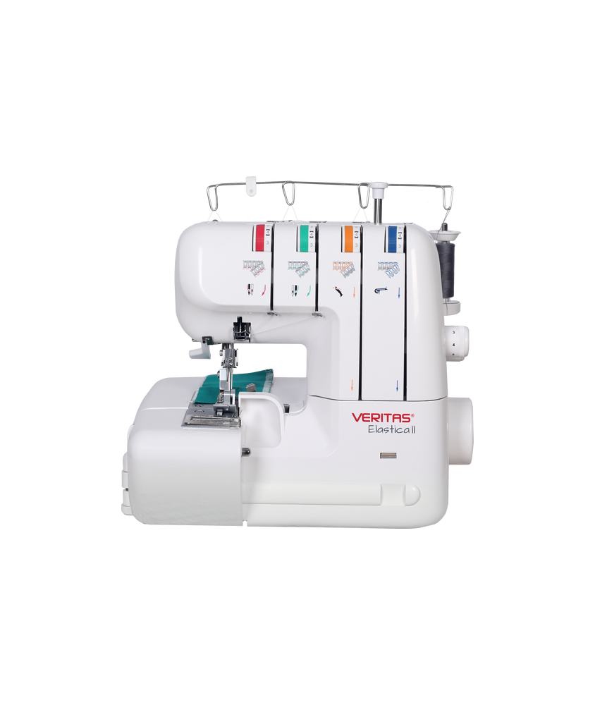 Veritas Elastica II — Surjeteuse 4-3-2 Fils | Maîtrisez l’art du surjet avec cette surjeteuse polyvalente dotée de 12 types de points : ourlets roulés, ourlets fins, surjet 2, 3 et 4 fils. Vitesse électronique réglable de 75 à 1 000 points/minute. Longueur de point et largeur de coupe réglables individuellement. Transport différentiel pour tissus élastiques ou froncés. Guide-fil codé couleur, coupe-fil intégré, bac à déchets. Puissance 105W — 220-240V/50Hz. Idéale pour des finitions professionnelles à domicile. Garantie 5 ans.