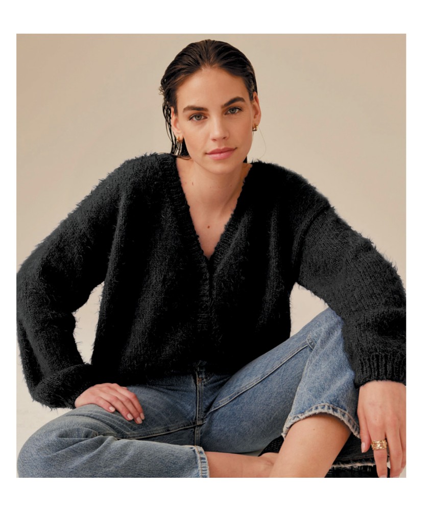 Craquez pour le Gilet Gladys de Phildar, un cardigan femme au tricot qui conjugue douceur extrême et allure contemporaine. Réalisé en Phil Beaugency coloris Noir, ce fil effet fourrure (55% polyamide, 25% acrylique, 20% laine) crée un rendu moelleux et aérien qui enveloppe de chaleur. Avec son encolure en V flatteuse, ses manches longues et sa fermeture par 5 boutons nacre, ce gilet deviendra votre pièce cocooning préférée. Expliqué en 5 tailles du 34/36 au 50/52.