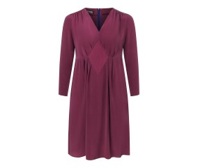 Deux robes grande taille ultra féminines, spécialement conçues pour sublimer les morphologies généreuses (FR 46-56) avec style et raffinement. Variante A : longue robe fleurie midi à manches longues bouffantes, encolure en V croisée, coupe cintrée à la taille puis évasée en jupe fluide — la silhouette allongée magnifiée par un imprimé romantique. Portée avec bottes, c'est le look bohème-chic assumé. Variante B : robe genou en uni prune profond avec plis décoratifs à la taille et encolure plongeante en V, manches ballon raffinées — une robe de cérémonie/cocktail qui valorise la silhouette sablier. Tissus recommandés : viscose fluide, crêpe, soie, satin ou lainage léger. Le fini couture est sublime et les détails de construction (plis, croisement, emmanchures) font toute la différence. Niveau plus difficile — un beau défi couture pour progresser vers les pièces maîtrisées. 🌸 Tailles FR 46-56.