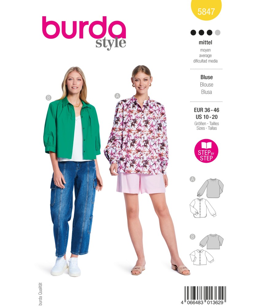 Un patron de couture officiel Burda pour réaliser un(e) blouse pour les femmes.