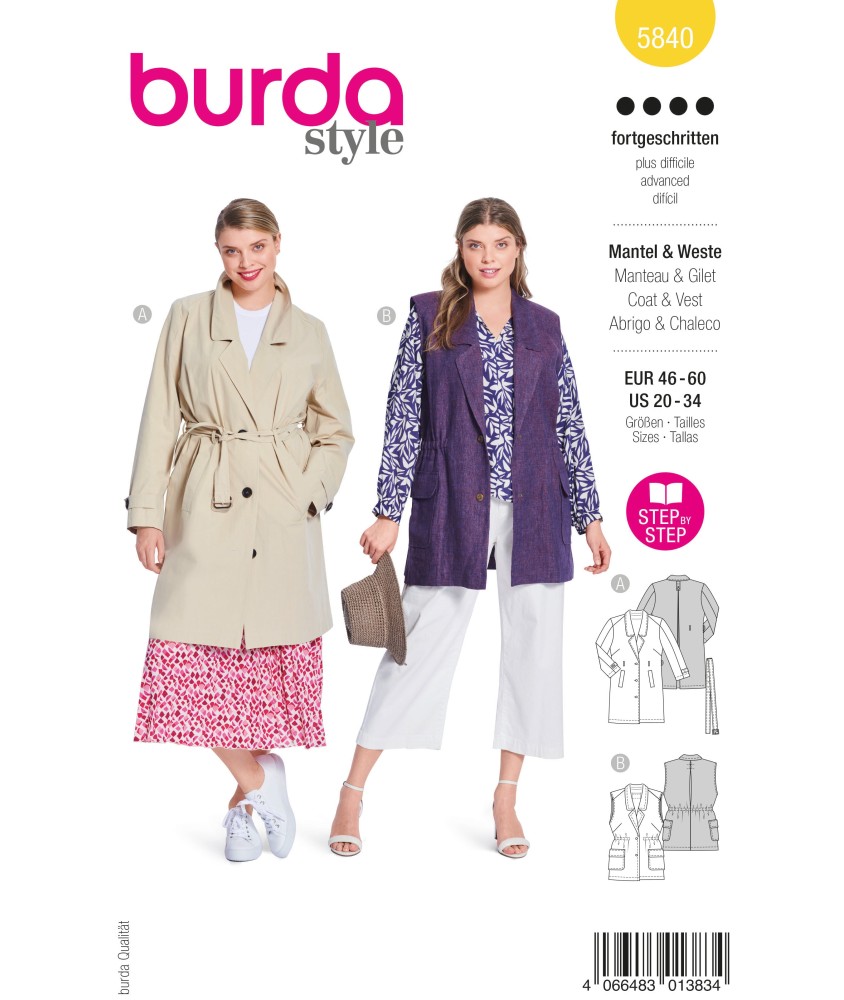 Un patron de couture officiel Burda pour réaliser un(e) veste pour les femmes.