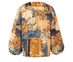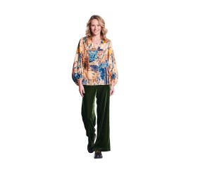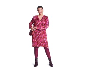 Un duo robe tunique et blouse aux détails recherchés pour des looks audacieux et féminins. Variante A : robe tunique courte en viscose imprimée graphique, encolure froncée en V avec plastron à plis, manches longues ballon et poignets élastiqués — une pièce statement à porter avec des collants opaques et des bottines pour l'hiver, ou sur un jean large en mi-saison. Variante B : blouse patchwork aux couleurs orangées, même construction à plastron froncé mais en version haut, à glisser dans un pantalon en velours ou un jean taille haute pour un style bohème-chic affirmé. Les fronces et plis aux encolures créent un relief féminin qui met en valeur le décolleté et fluidifie le tombé. À coudre en viscose imprimée, satin mat, crêpe fluide, voile de coton ou soie pour un effet drapé envoûtant. Niveau moyen — un beau défi couture qui valorise vos compétences sur les fronces et les plis d'encolure. 🌈 Tailles FR 36-48.