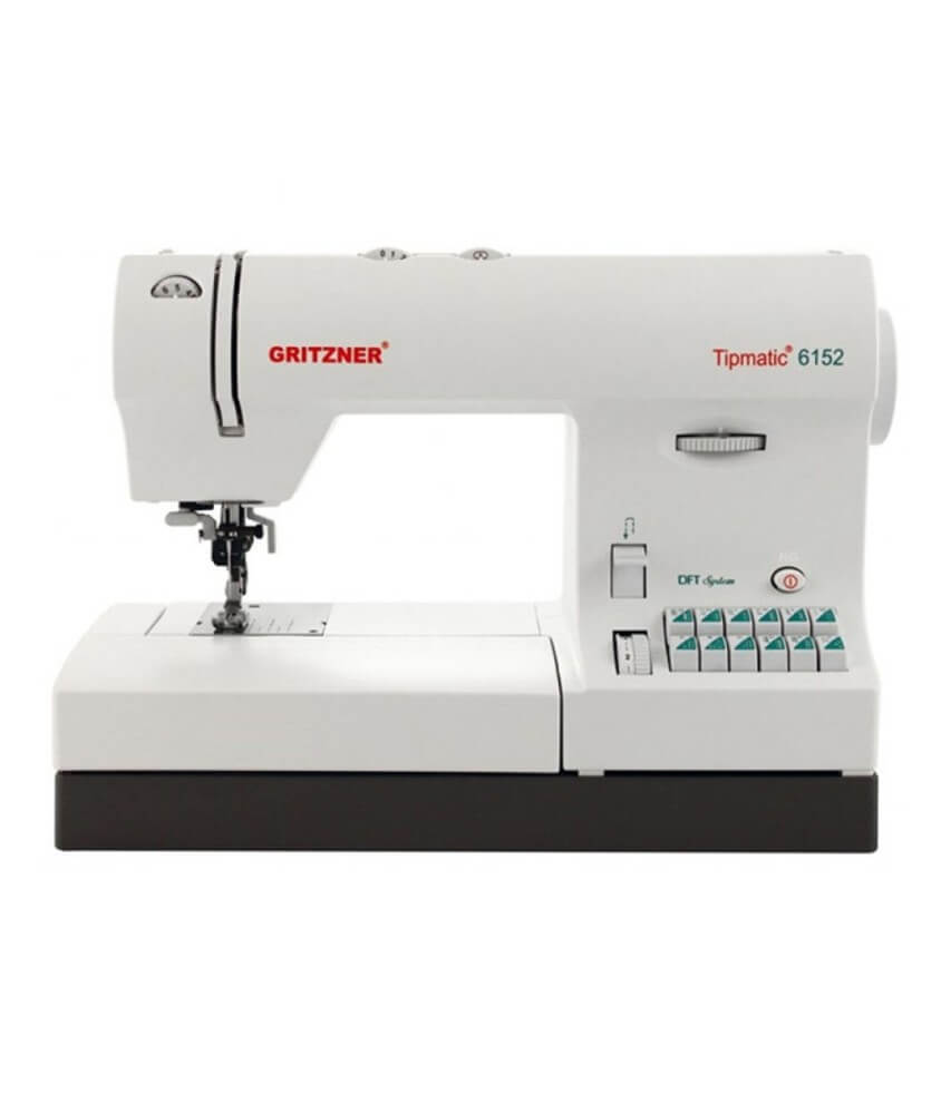 La Gritzner Tipmatic 6152-DFT est le haut de gamme de la série Tipmatic : plus de 210 points de couture, molette de sélection rotative, réglage continu de la largeur de point et surtout le système de double entraînement DFT — l'héritage direct du célèbre IDT Pfaff, à un prix bien plus accessible.