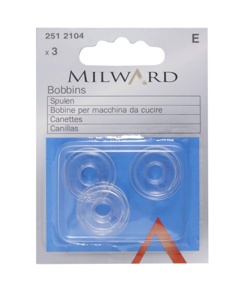 Lot de 3 canettes universelles métal Classe 15K — Milward. Format 15K le plus courant des machines domestiques. Matière métal haute qualité pour une tension constante et une durée de vie optimale. Compatible avec les grandes marques du marché. Référence 2512104.