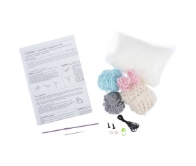 Fil acrylique, crochet, yeux de sécurité, rembourrage polyfil et instructions détaillées : tout est inclus dans une belle boîte cadeau.