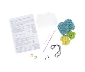 Fil acrylique, crochet, yeux de sécurité, rembourrage polyfil et instructions détaillées : tout est inclus dans une belle boîte cadeau.