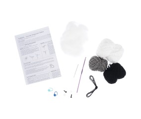 Fil acrylique, crochet, yeux de sécurité, rembourrage polyfil et instructions détaillées : tout est inclus dans une belle boîte cadeau.