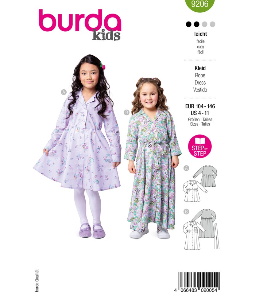 Ces deux patrons de robes pour enfants sont parfaits pour les débutants ! Le premier patron montre une maxi-robe cool avec une poche asymétrique et une ceinture à nouer - un choix génial pour l'été. Le deuxième patron est une ravissante robe-chemisier avec un imprimé ABC et des détails charmants comme le petit col à revers et les manches à manchettes. Facile à coudre et très apprécié !