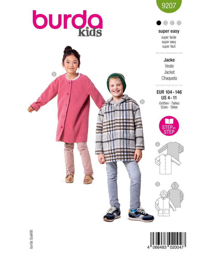 Patron Burda kids n°9207 – Manteau à capuche Fille Automne-Hiver 2025 Tailles 104-146