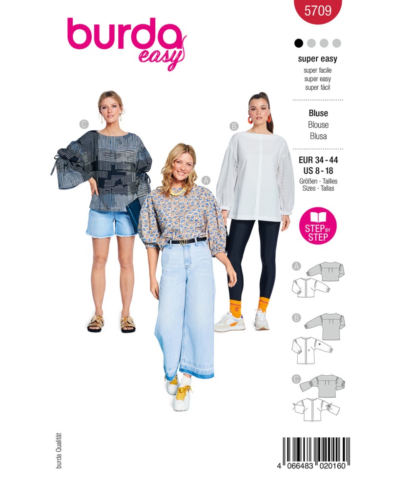 Découvre trois patrons de chemisiers stylés de burda easy qui conviendront à tous les débutants en couture. La blouse à motifs avec des ourlets de manches élastiques et un pli raffiné peut être combinée de multiples façons. La variante de la blouse-chemise a des manches longues e