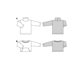 Laisse-toi séduire par ces deux patrons de pulls ! La première variante en maille bouclette douillette avec un col roulé assure chaleur et style - également super comme robe tricotée ! La deuxième variante de coupe combine un bouclé noble avec des poches kangourou sportives et une encolure effilochée. Les deux modèles sont faciles à coudre et apportent de la variété dans ta garde-robe !