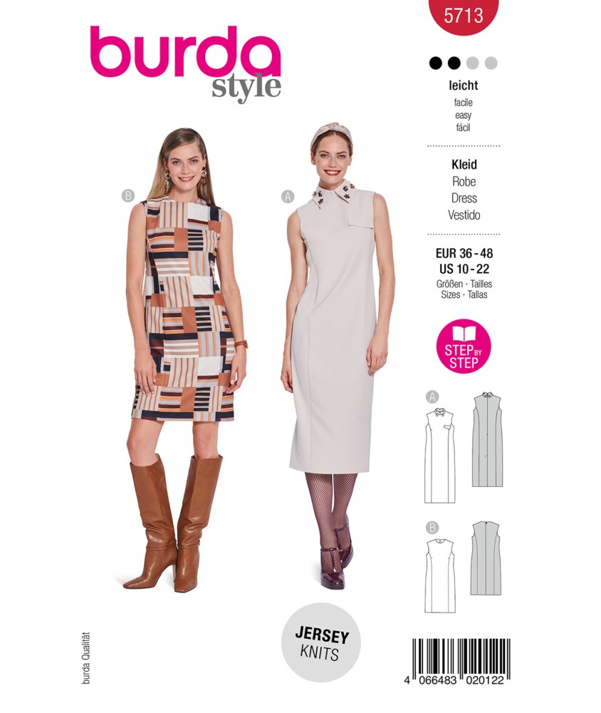 Ce patron réunit deux variantes de robes élégantes : Une robe shift à taille haute qui met parfaitement en valeur ta silhouette et qui apporte une touche de mode grâce à ses applications de fleurs en écaille de tortue. Alternativement, la robe fourreau classique, qui convainc par son tissu confortable et sa coupe polyvalente, aussi bien au bureau que pendant les loisirs. Facile à coudre - pour un succès rapide !