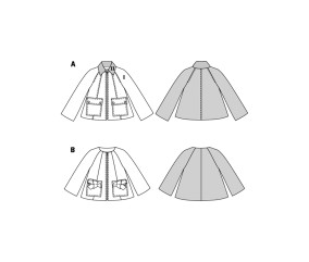 1 patron, 2 variantes de vestes, toutes deux faciles à coudre ! La variante 1 séduit par son col en velours côtelé et ses poches XL plaquées, les coutures surpiquées lui confèrent un look très tendance. Les fashionistas la combinent même avec des robes glamour. La variante 2 surp