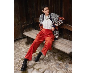 Ce patron de pantalon offre deux variantes passionnantes et réussit à tous les débutants en couture ! La variante 1 est le parfait coup de mode : le velours côtelé de couleur signal attire tous les regards, tandis que la patte de boutonnage latérale et la large ceinture apportent