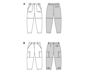 Ces deux patrons de pantalons sont parfaits pour les couturières expérimentées. Le premier pantalon cargo séduit par ses surpiqûres discrètes et sa coupe sportive et élégante, qui convient aussi bien pour le bureau que pour une tenue décontractée avec des sneakers. La deuxième co