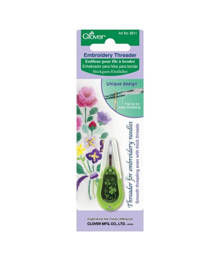 L enfileur pour fils a broder Clover CL8612 est l accessoire indispensable pour toutes les brodeuses qui souhaitent gagner du temps et faciliter leur travail. Sa pointe plate specialement concue permet d enfiler meme les fils moulines les plus epais et les fils perles sans effort. Le corps en resine violet est agreable a tenir et facile a reperer dans une boite a couture. Un classique des accessoires Clover, reconnu dans le monde entier pour sa qualite et son efficacite.