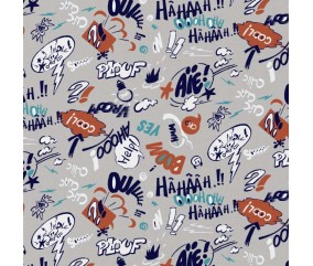 Le tissu en question est une merveilleuse combinaison de confort, de créativité et de durabilité. Composé à 100 % de coton, il offre une sensation agréable au toucher tout en présentant une qualité respirante caractéristique de cette fibre naturelle. Son motif d'impression est un véritable hommage à la bande dessinée, ajoutant une touche ludique et artistique à tout projet de couture.