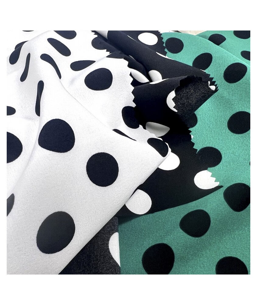 Tissu Stretch Imprimé Pois – Sublimez vos créations avec ce magnifique tissu stretch imprimé pois, conçu pour ajouter une touche d'élégance et de modernité à vos projets de couture. Ce tissu est idéal pour confectionner des vêtements confortables et stylés, grâce à sa composition unique qui allie souplesse et résistance.