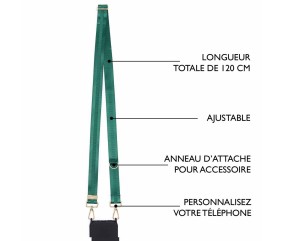 Découvrez l'élégance et la praticité avec les sangles pour pochette téléphone Draeger, l'accessoire parfait pour ajouter du style à votre smartphone. Disponibles en trois couleurs raffinées – camel, rouge, et vert – ces sangles personnalisent votre pochette tout en assurant un confort et une sécurité inégalés. Que vous optiez pour le camel classique, le rouge audacieux ou le vert naturel, adaptez votre téléphone à votre style quotidien. Fabriquée en tissu résistant, cette sangle est conçue pour une utilisation quotidienne, offrant une durabilité exceptionnelle. Avec une longueur ajustable de 90 cm à 150 cm, elle garantit un port confortable pour toutes les morphologies. Compatible avec une large gamme de pochettes, elle est idéale pour un port en tour de cou ou en bandoulière. Profitez d’un accessoire pratique et stylé qui garde votre téléphone à portée de main. Associez-la à nos pochettes et étuis assortis disponibles sur Sperenza pour un ensemble harmonieux. Adoptez la sangle Draeger, l’alliée indispensable pour un smartphone chic et sécurisé.